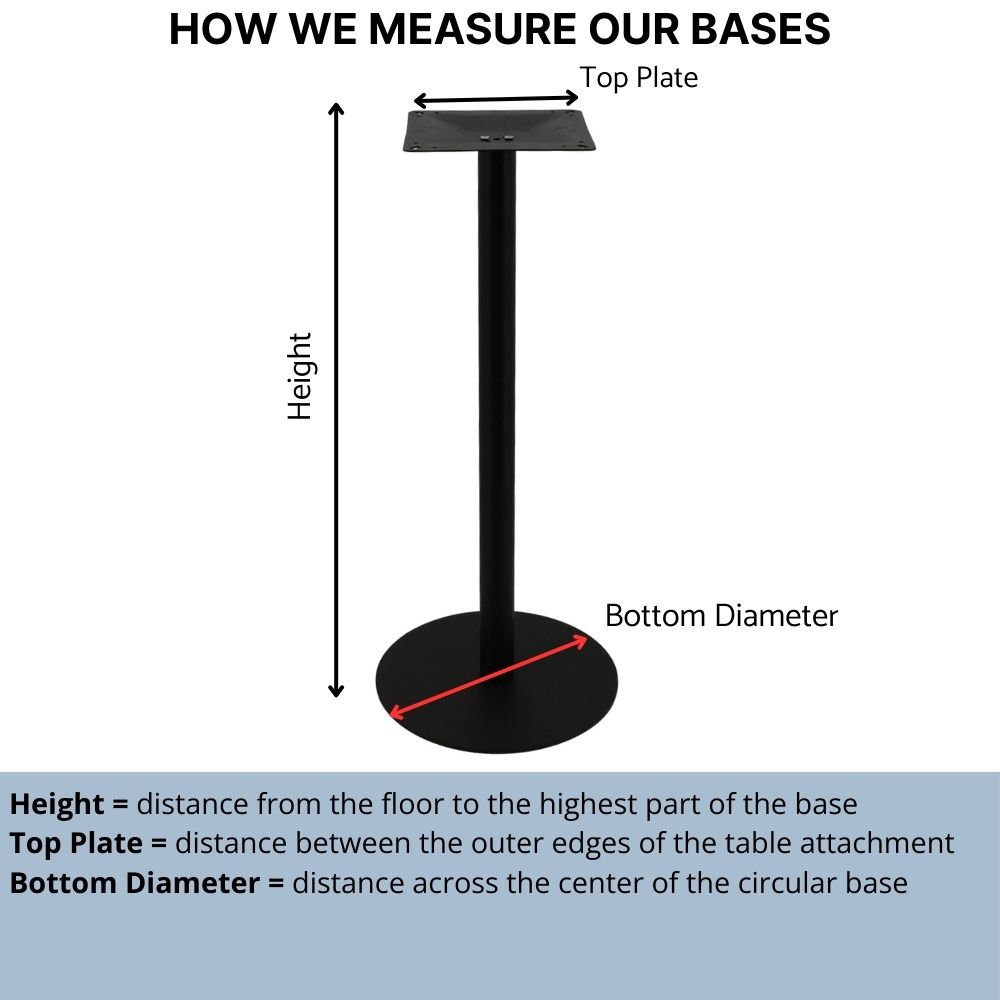 Please note that this base does not come with screws to attach the table base to a table top. Screws will have to be purchased by the customer at their own expense.