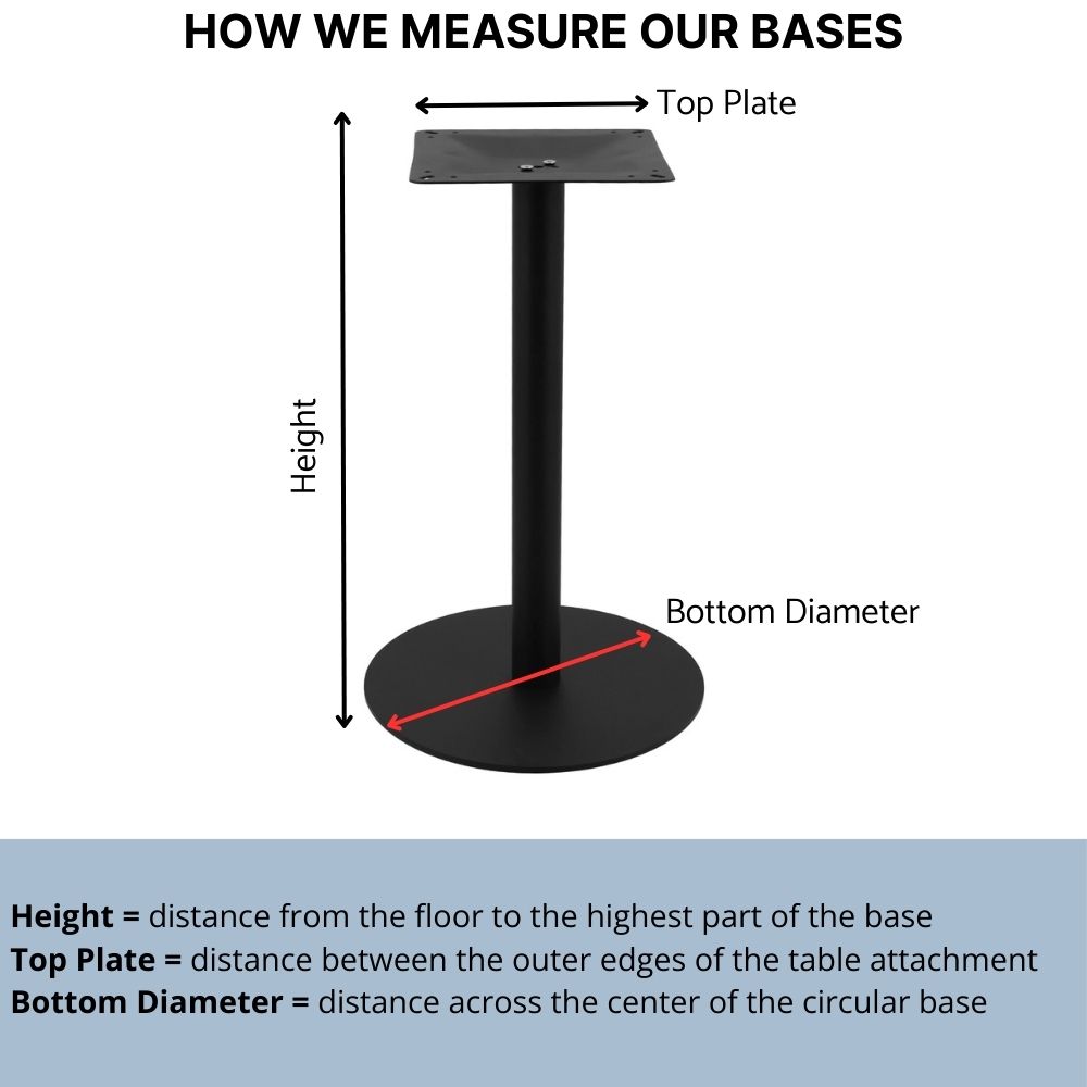 Please note that this base does not come with screws to attach the table base to a table top. Screws will have to be purchased by the customer at their own expense.